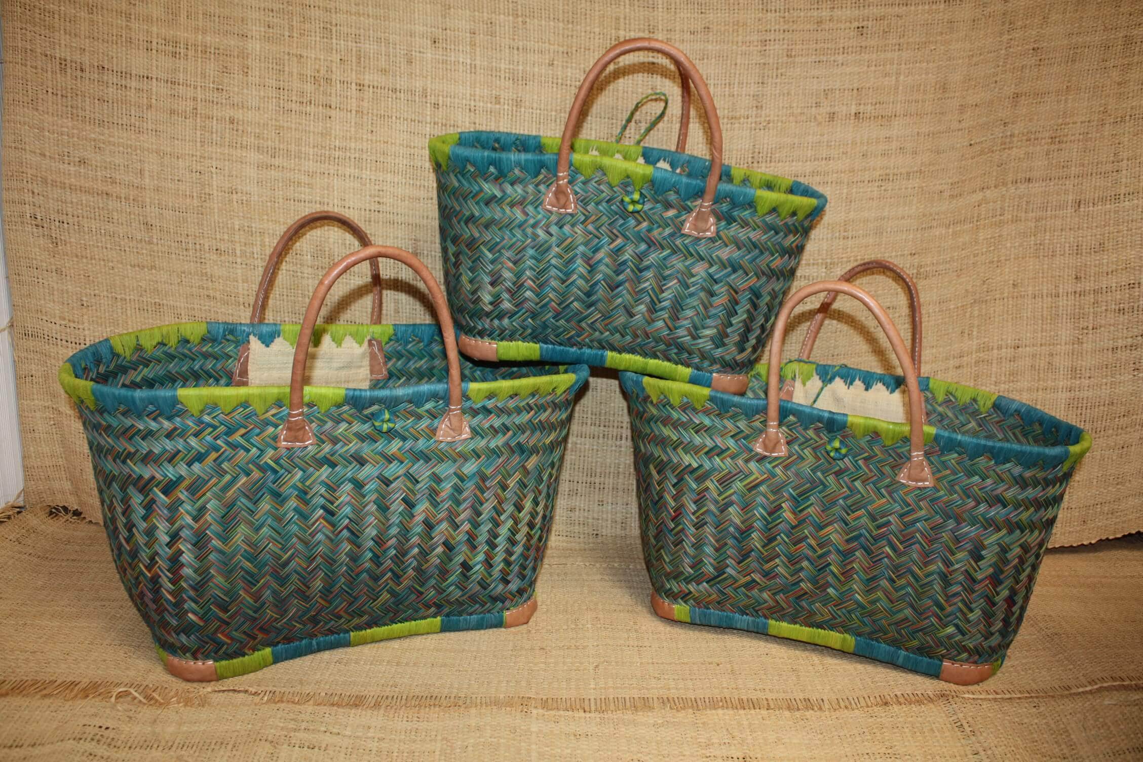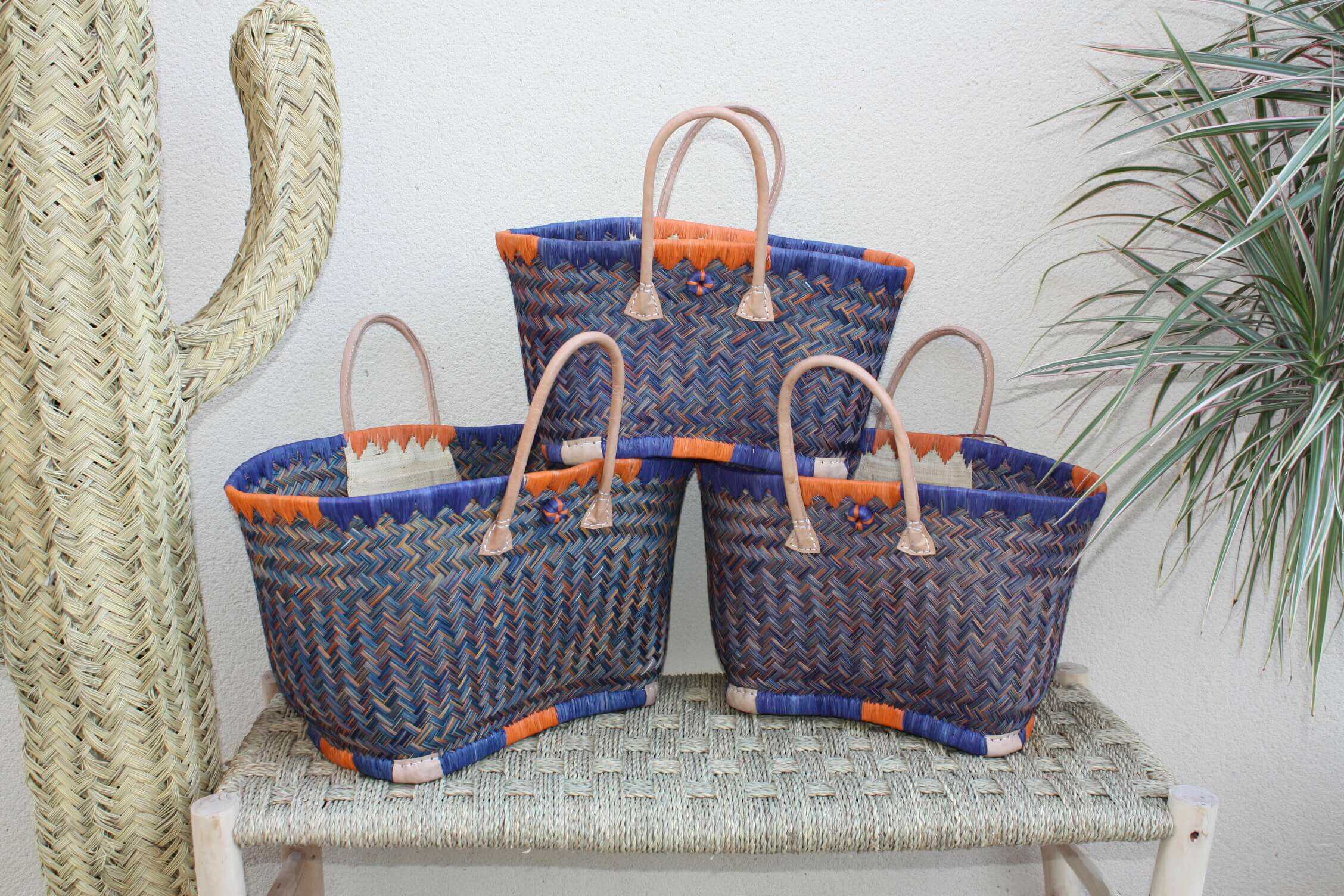 Are you looking for a beautiful and large colorful basket? Blue, green, yellow, red, red, purple, orange, pink... Buy one of these beautiful tote bags from Madagascar. Solid thanks to its handles and zebu leather reinforcements. Braided by hand by my selected artisans in order to offer you premium quality braiding. Ideal for shopping, the beach and many more, you will take it with you wherever you go. Made of aravola, an African fern, this basket is light, solid and 100% natural! Large XXL format: Approximately 55cm long and 30cm high. Its measurements can vary by several centimeters, each basket is handmade so each basket will be unique by hand.