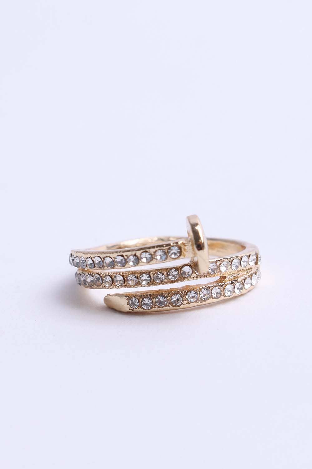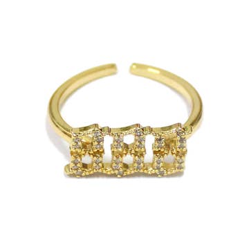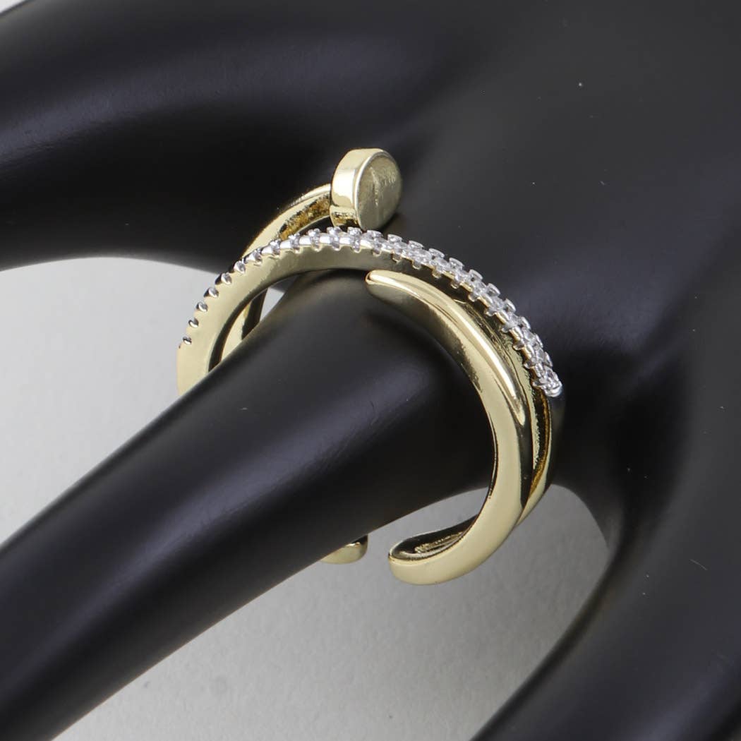 Micro Pave Geometric Round Shape Gold Open Ring O2071