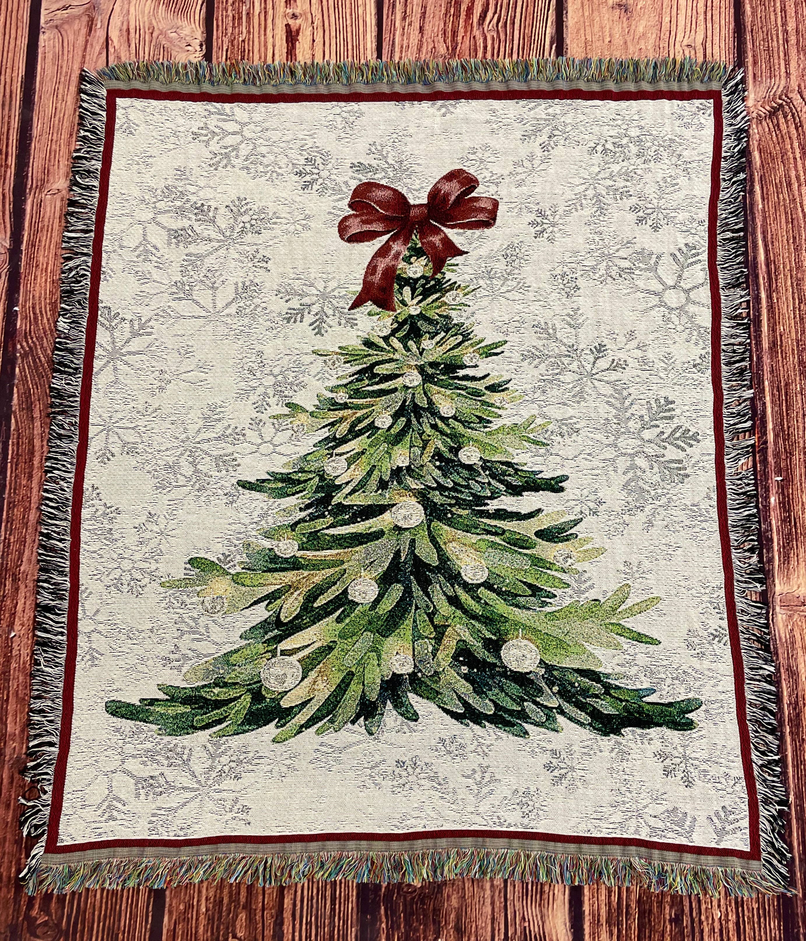 Beige Vintage Woodland Christmas Fairy Woven Blanket Tapestry for wholesale on Faire2