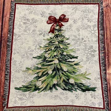 Beige Vintage Woodland Christmas Fairy Woven Blanket Tapestry for wholesale on Faire0