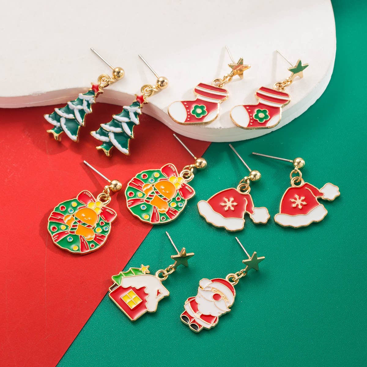 Earrings are made from polymer clay. Hardware is hypoallergenic surgical steel or real 18k gold plated hooks. Santa hats and beards measure approximately 1.5 inches, not including earring hardware.