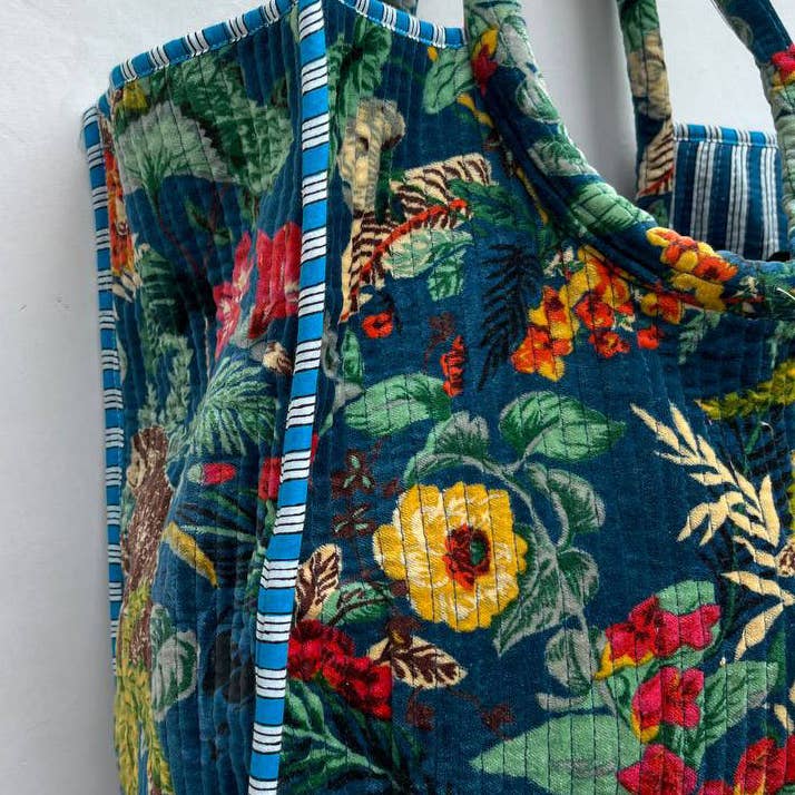 Monkey Floral Printed Bag Quilted Velvet Cotton Shopping Bag