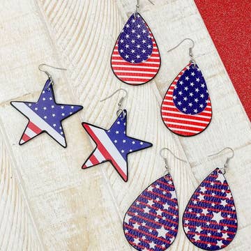 Independence Day Jewelry Sunflower and American Flag design Handmade Wood material Earring size 2.7CM * 5.5CM