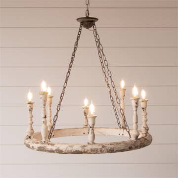 Inspired by farms and ranches, Stokes blends authentic materials like cattle rope and refurbished metal. A hammered Texan star is welded into the design. Finished in a sophisticated Dark Rust, Stokes complements rustic and farmhouse decor. This chandelier is perfect for dining rooms and foyers.