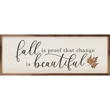 Fall Is Proof That Change Is Beautiful. All our signs are build into a wooden box frame with a rustic touch. Signs are hung directly off the frame. Keywords- Fall, Fall Décor, Fall Home Décor, Farmhouse, Vintage Home Décor, Autumn, Wall Décor, Rustic Home Décor, Wall Art, Pumpkin Décor, Modern Home Décor, Thanksgiving, Wholesale, Autumn Décor, insider free shipping, high sell through, fall decorations, creative brands