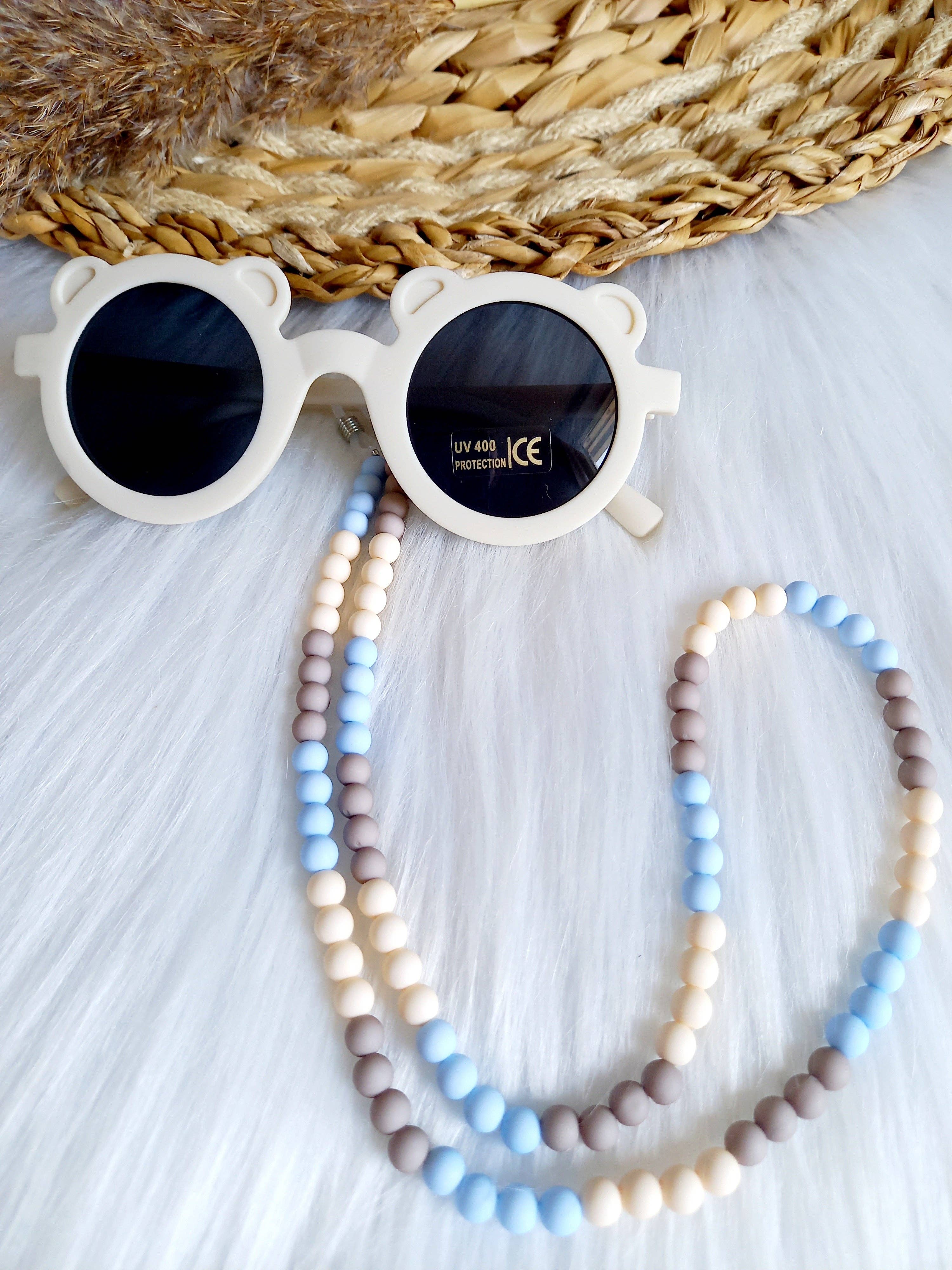 Dit mooie zonnebrillenkoord kan kan ontbreken voor de zomer. Het koord is van elastiek met rubbertjes voor je zonnebril. De koorden passen heel mooi met de zonnebrillen. Geschikt vanaf 1 jaar tot volwassen