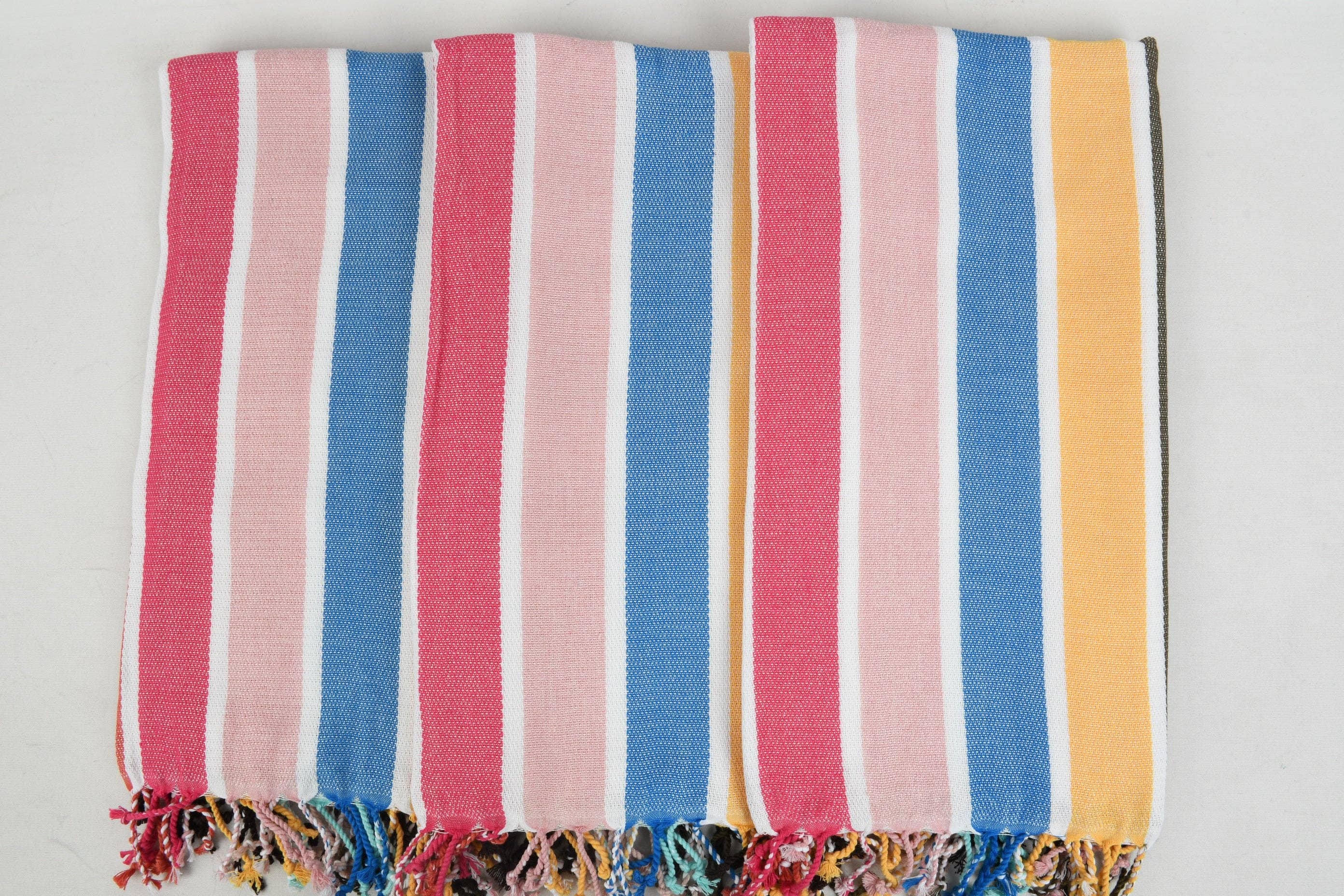 Product Dimensions: Weight: 12 Ounces/ 330 grams Length: 70 inches (180 cm) Width: 40 inches (100 cm) Mediterranean Turkish Beach Towels 33x66in 100% Turkish Premium Cotton Premium Turkish Towel | Beach Towel | Peshtemal | Hammam Towel | Bath Towel | Beach Gifts Fast Drying-Thanks to the unique knitting technique and 100% natural premium cotton it dries super fast Sand Resistant Super Portable- Great for travel and beaches, it fits easily into a small luggage and beach bags. 5-6 towels fits into a small beach bag, one towel rolls to a size of a burrito! Machine Washable- Cold Wash and tumble dry at low temperature is recommended. These Striped Turkish Towels can be a great idea as gifts.