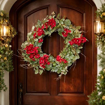 Leather Look Berry And Pine Horse Wreath with poinsettia