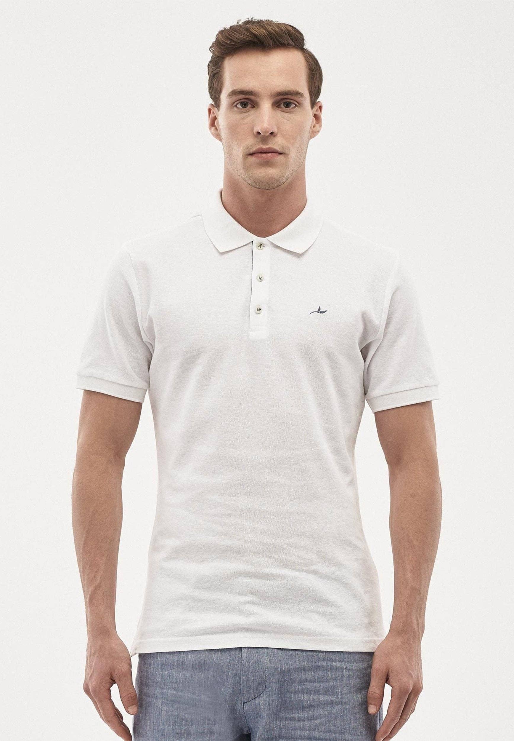 * Artikelnummer: MOR7264 * Farbe: Beige * Passform: Slim Fit * Kragen: Polokragen * Ärmellänge: Kurzarm * Mit Knopfleiste * Logo-Stickerei auf der linken Brust * Aus Pique * Material: 100% Bio-Baumwolle * Unser Model ist 1,89 m groß und trägt Größe M