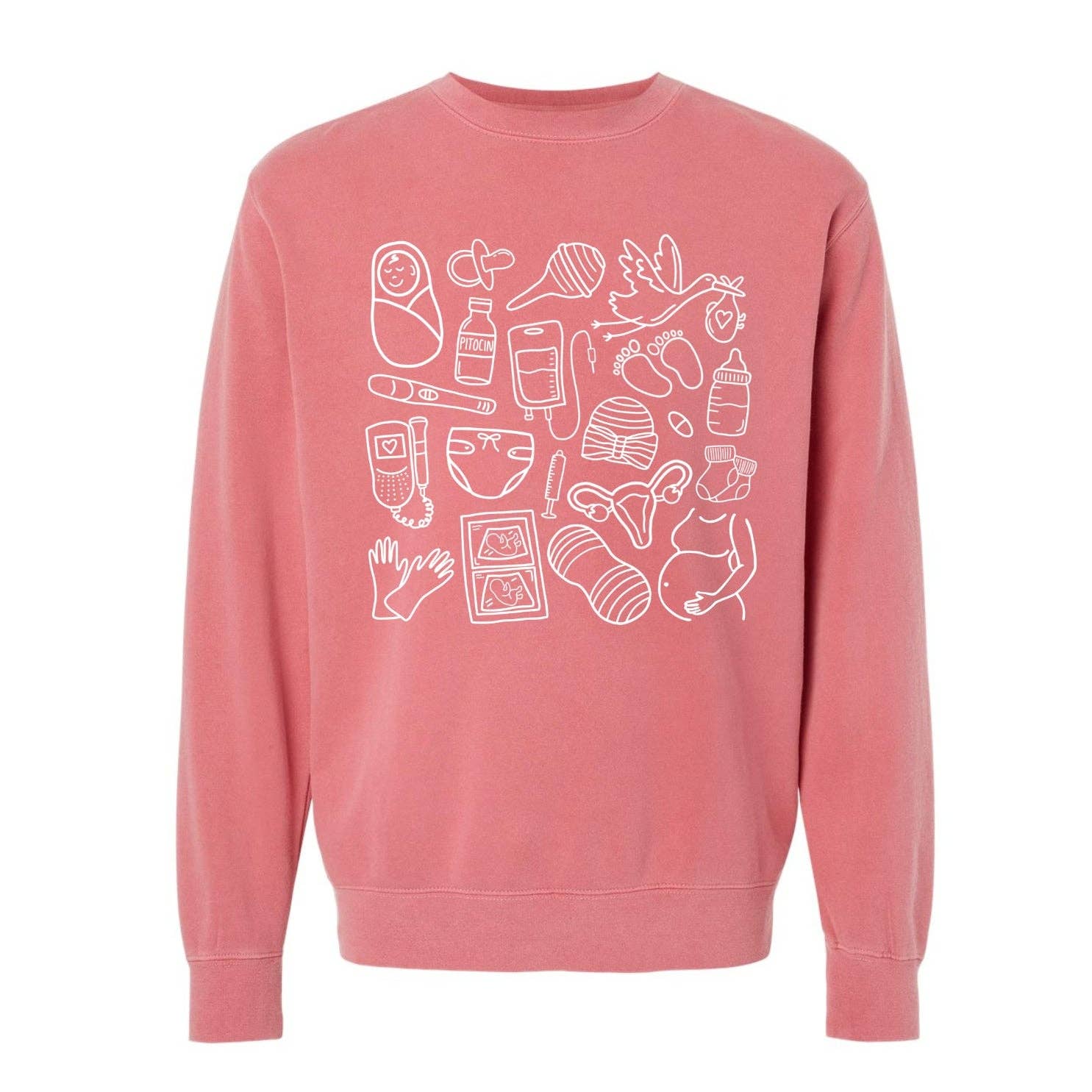 This crewneck features our hand-drawn Pharmacy Doodles design on the front. Perfect for pharmacists, technicians, and other healthcare professionals. This Comfort Color crewneck is the ideal blend of 80% ringspun cotton and 20% polyester. Pre-shrunk, side-seamed, soft-washed, and made with garment-dyed fabric with forward rolled shoulders, set-in sleeves, and 1x1 rib on the collar & cuffs. Take a peek at the size chart to guarantee you are getting the correct fit for you! (swipe left on the photo carousel until you get to the end to view the size chart).