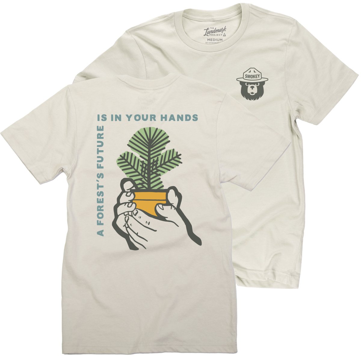 Landmark graphic tees come in standard unisex sizing, are pre-washed and pre-shrunk, and are sustainably made from a super soft blend of 60% BCI Cotton and 40% Recycled Polyester. For all who cherish the forest, this graphic tee connects us. Although this artwork was inspired by conservation campaigns from decades past, the message rings true today. A forest’s future is in your hands, take care to protect what you love! All Smokey Bear products created by The Landmark Project are licensed through the US Forest Service, and 10% of the proceeds go toward wildfire prevention education.