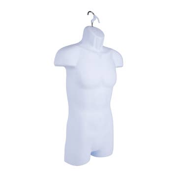 Fits Men's Sizes S-L The Premium Injection Molded Men’s Torso Form is an economical and effective solution for displaying apparel and swimwear. Made from flexible, shatterproof plastic, each form features a half-round, open-back design that allows clothing to be easily pinned and synched for a clean, professional look. The opaque finish enhances garment details, making your display visually appealing. These torso forms are easy to dress, suitable for both top and bottom merchandise, and lay flat against display walls or freestanding units. Available in White, Black, and Frosted finishes.