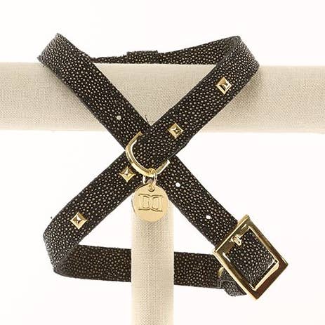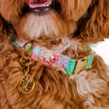 Glitz n Gold Rockstud Dog Collar. Can I get a ruff for this rock-studded dog collar? Your dog will feel like a celebrity when hitting the streets in our high fashion, chic, designer dog collar. If you're ready to get dogs barking at the dog park, this fashion-forward look is for you! All Glitz n Gold products are made with faux-leather and high-quality Gold hardware. We are cruelty-free and strive to make vegan products that last. Made in Los Angeles. Sizing: Small 8.5-11.5 Medium 10.5-13.5 Large 12.5-15.5