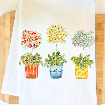 Geranium Hummingbird Pots Bagged Towel