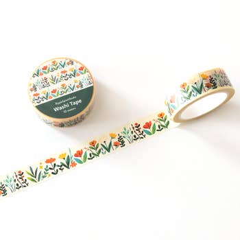 Functional, versatile tape for packaging gifts, scrapbooking, packing orders, hanging prints, or journaling. 15 mm Washi tape Easily removable with no residue 1 Roll measures W 15mm x L 10m (33 feet) Individually shrink wrapped with a matte sicker label Designed in California