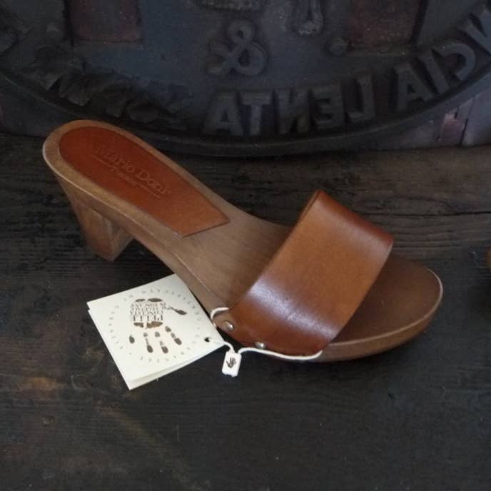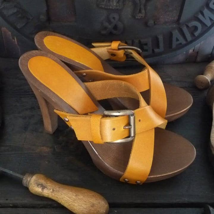 Women's wooden clogs with heel by Mario Doni, handmade and crafted with genuine vegetable-tanned leather and customizable, Made in Italy product. Women's Clog Model: Maria Clog color: Red * Heel: 100 mm Upper: Genuine Vegetable-Tanned Leather Color: Red + Red flower * Available in other colors upon request Clogs made of wood in the finest Tuscan artisanal tradition. Uppers in genuine vegetable-tanned leather available in a wide range of colors to bring joy to your summer. All our products are made exclusively to order, do not hesitate to contact me for further modifications.