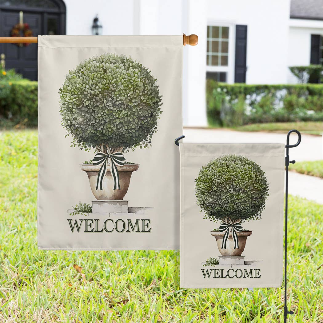 Design available In 2 Sizes •12"x18" Standard garden flag •24"x32" Medium house flag Garden Flag Details: 1.25" pole pocket House Flag Details: Banner style is not made with hanging loops 3" pole pocket will fit all poles • Choice of single or double-sided printing • Single-sided printing will have a white backside. Flags will not be see-through. • All flags are handmade to order in the USA • 2-ply 100% poly poplin-canvas Important Order Details: •We are proud to be 100% sustainable. •All items are handmade after your order is placed. •We do not sell used or returned merchandise. Contact Faire for all returns. •Contact us directly for assistance with any defect and we will offer an immediate replacement. •Items will be shipped together & do not come in individual packaging.