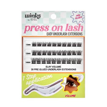 The Silly George Pop-On lashes are lashes like you’ve never seen before. This new technology provides each cluster with a pre-glued pad with incredible hold. This means no need for additional tricky, messy bond/seal products. These Pop-On lashes are just that - clusters that you simply pick up from the box and "pop" them straight onto your eye on the waterline underneath your natural lashes. Lash Math Comes with 60 clusters / box (12 x 8mm, 12 x 10mm, 24 x 12mm, 12 x 14mm) Depending on eye shape, and lash style, most people will get 5-7 pairs per box 5-10 days of wear per pair Our medium lash, Bloom, is the unique star in our Pop-On collection with designated left and right clusters for easy application. Each cluster fans out to create a fuller, longer effect, ideal for crafting a stunning cat-eye look that's bound to turn heads.