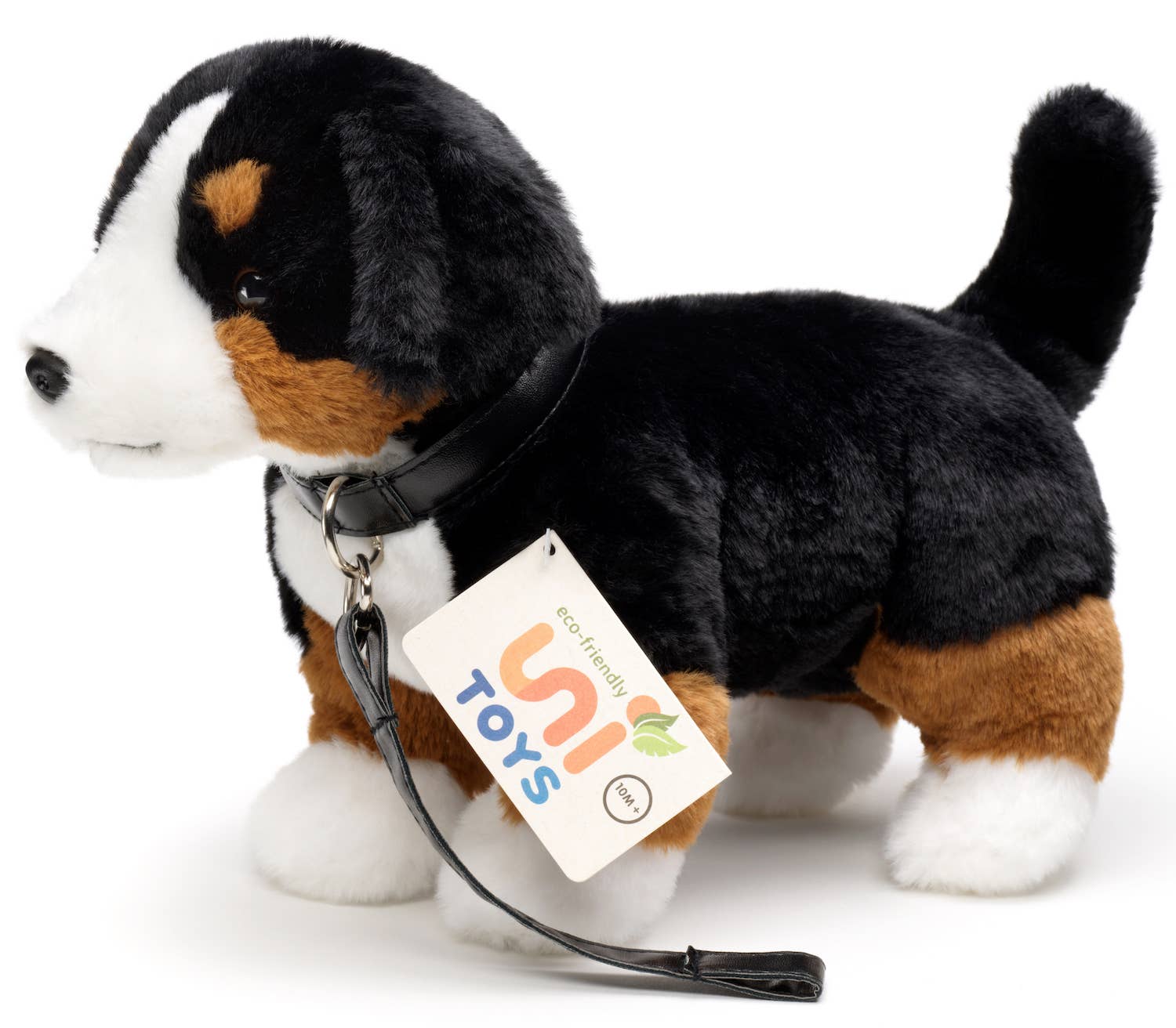 LIFELIKE DESIGN: The cuddly Bernese Mountain Dog is simply to love and cuddle! Lifelike and fluffy soft With collar and leash Great for playing, collecting, as a gift or for decoration! SELECTED QUALITY: High-quality materials - First-class workmanship - Handmade - Fluffy soft plush - Tested safety SUSTAINABLE: 100% recycled filling material Dimensions: length 19 cm (without tail) or 28 cm (with tail), width 14 cm, height 19 cm MATERIALS: outer material: 97% acrylic, 3% polyester; filling material: 100% recycled polyester PRODUCT NAME: Bernese mountain dog puppy, sitting - With leash - 19 cm (height) - Keywords: dog, pet, plush, plush toy, stuffed animal, cuddly toy
