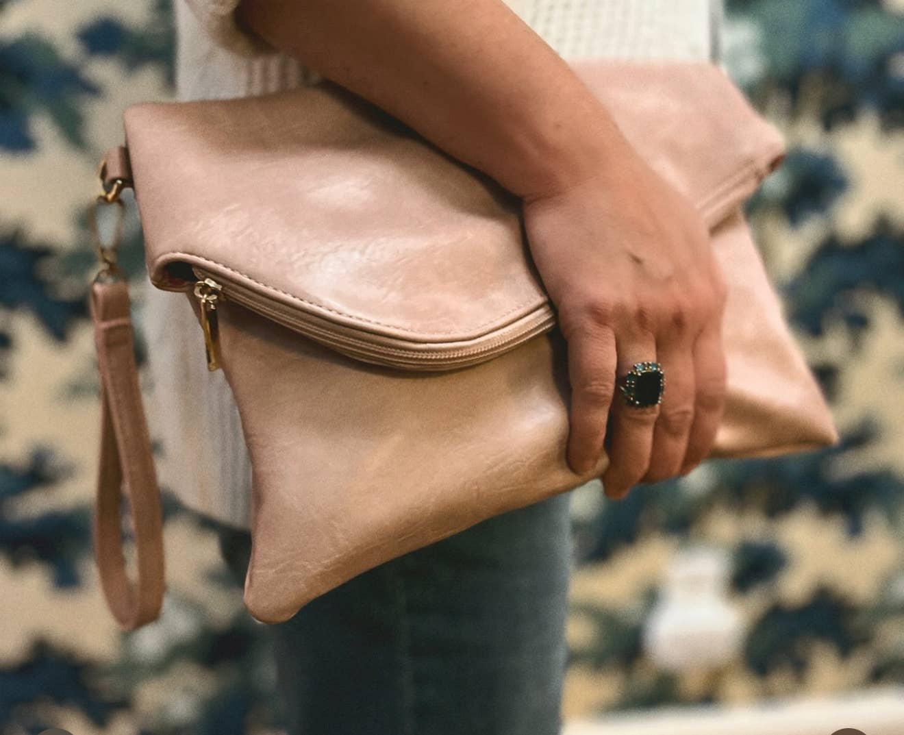 We are getting all the Fall Vibes from this adorable Clutch! These are a generous size and measure 13.5" x 9.5". These feature a wrist handle and inside have two pockets and one zipper pocket. Made of PU Leather and inside lining is made of Polyester. These come packaged in a dust bag in a plastic bag.