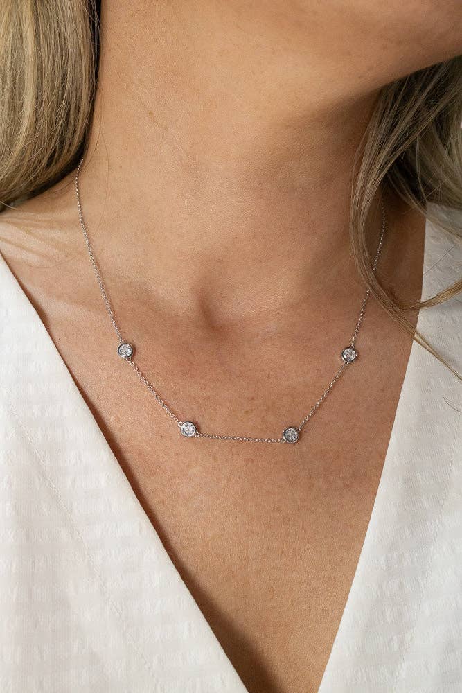 * Available in sterling silver and 14k gold plated sterling silver * 2.75mm prong set white cubic zirconia detail * 17.5mm stationary pendant * 16 inches long with a 2 inch extender * Cable chain