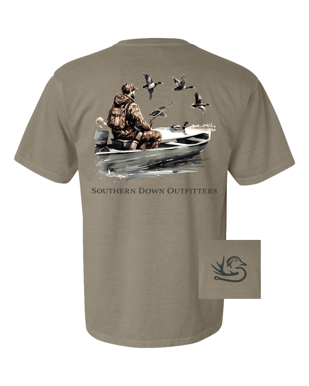 Comfort Colors Shirt - Relaxed Fit Available in Khaki Pre shrunk Garment-dyed 100% ring spun cotton Southern Down Outfitters Black Lab Duck T shirt Care instructions: machine-washed cold, inside-out, tumble dry on low.