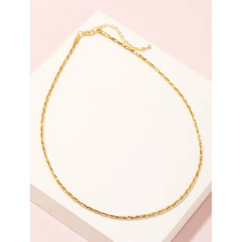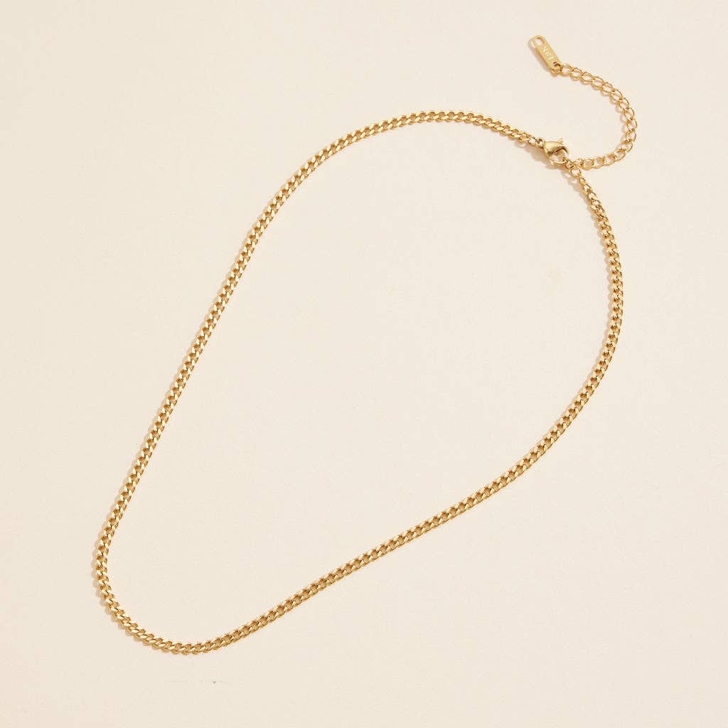 This edgy necklace features 18K gold dip and stainless steel materials, combining style and durability. Upgrade your basic necklace game and make a statement with this short, minimalist design. Enjoy the benefits of a high-quality necklace without compromising on style. Length - 16" + 2 ext