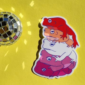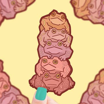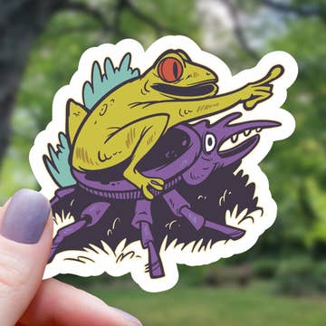 Toad or frog sticker with poisonous plants (lantern plant and mushrooms) growing from its back. Toads are associated with longevity, the phases of the moon, transformation, immortality, and wisdom. Fall themed, witchy themed. —Clear vinyl sticker, roughly 3”x 2”. —Professionally printed