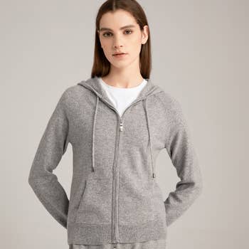 7.8-ounce, 50/50 cotton/poly fleece Air jet yarn for softness Two-ply hood with dyed-to-match drawcords Removeable tag for comfort and relabeling Side seamed with a contoured body for a feminine fit YKK metal zipper Front pockets