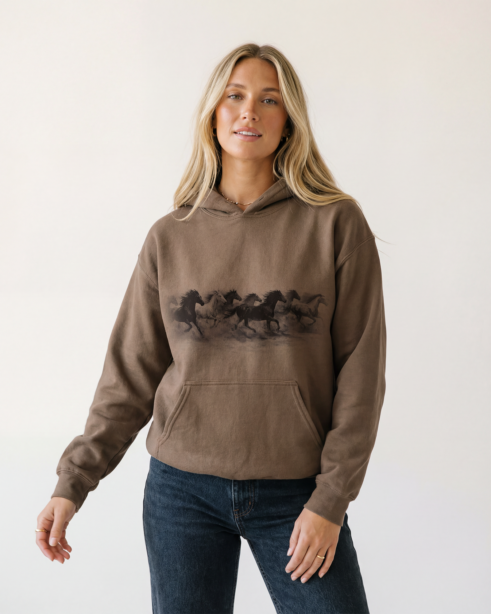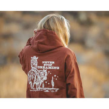 Never Stop Hoodie A cozy, everyday hoodie inspired by perseverance, grit, and the drive to keep going. The Never Stop Hoodie features original hand-drawn artwork and a soft, comfortable feel designed for cool mornings, late nights, and everything in between. A reliable staple customers reach for season after season. Details 8.4 oz, 80% cotton / 20% polyester Soft mid-weight fleece Unisex fit (true to size) Front kangaroo pocket and drawstring hood Original Modern Cowgirl hand-drawn artwork Printed in-house in Arizona Why retailers love it Classic hoodie style with broad appeal Easy core layer with strong sell-through