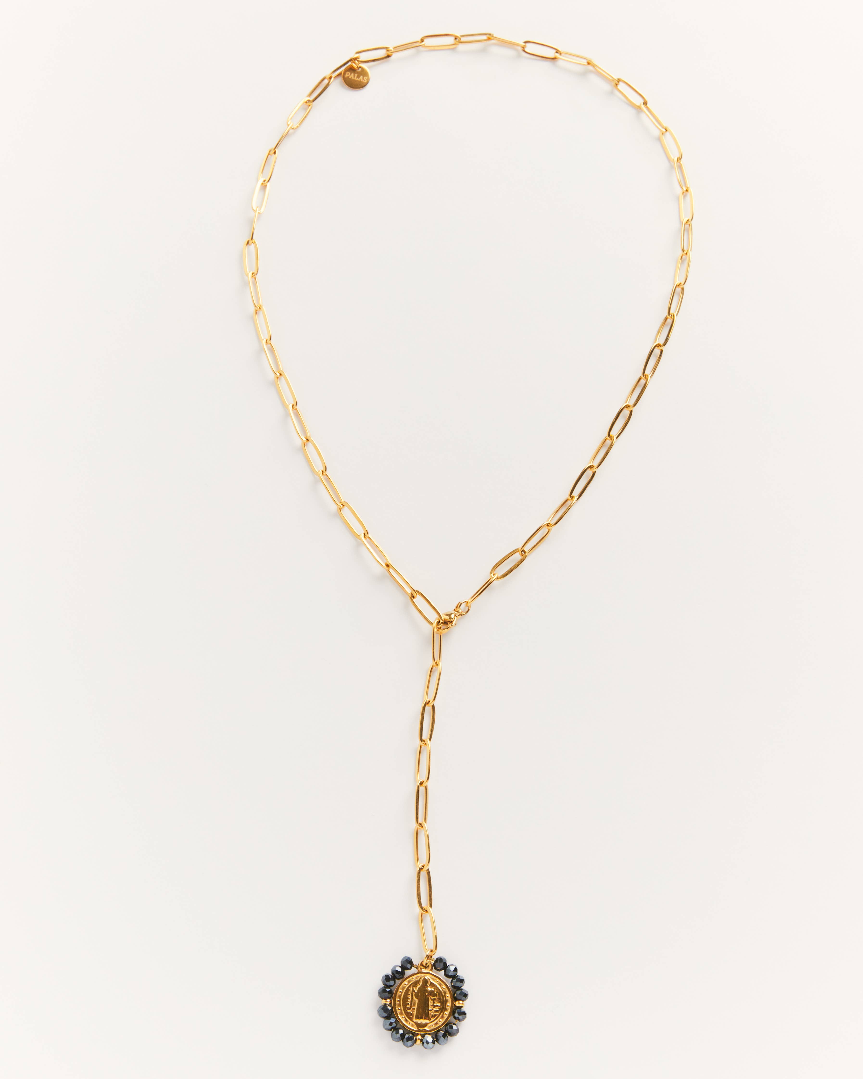 Santa Maria Hematite -golden medal necklace with dark stones