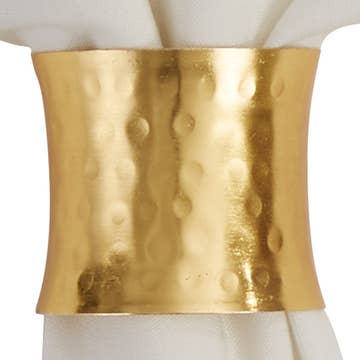 An elegant and timeless set of gold napkin rings designed for every season and occasion. Made from high quality and durable color resistant metal that will not fade or scratch. A perfect way elevate your favorite napkins, by rolling them up and sliding them through the napkin rings, providing a neat and stylish presentation. An excellent way to elevate your home decor during holidays, weddings, entertaining and special events. FEATURES -Color: lustrous matte gold -Material: premium zinc alloy metal -Size: 1.7” width x 0.23” height -Set of 4 napkin rings -Fits all napkin sizes and shapes for a beautiful and elegant tabletop presentation -Fade and scratch resistant metal that lasts for a lifetime -Keeps napkins from slipping or moving around during meals -Functional, durable, lightweight, and sustainable -Perfect for dining experiences, holidays, weddings, events and more -Imported
