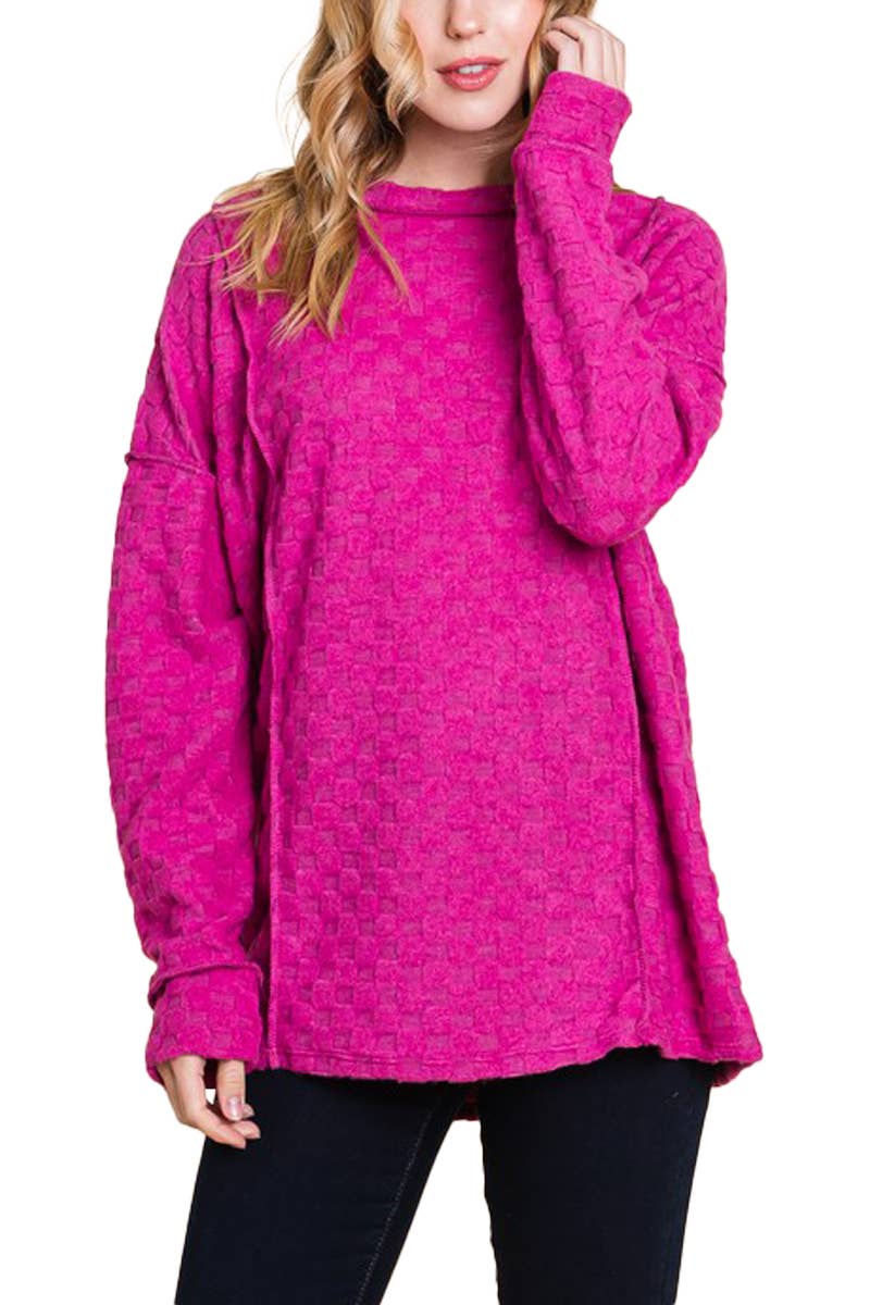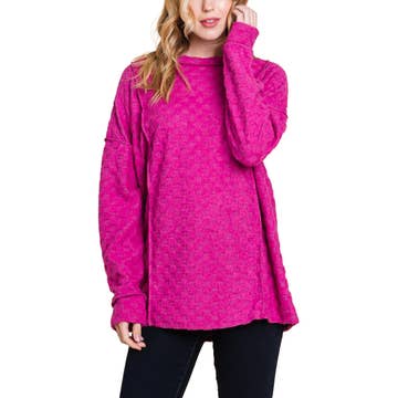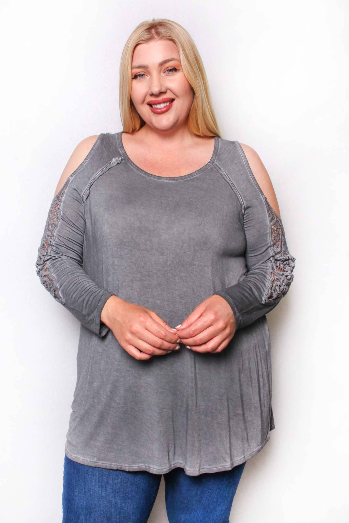 Wholesale Women's Plus Long Sleeve Cutout Lace Round Neck Solid Top
