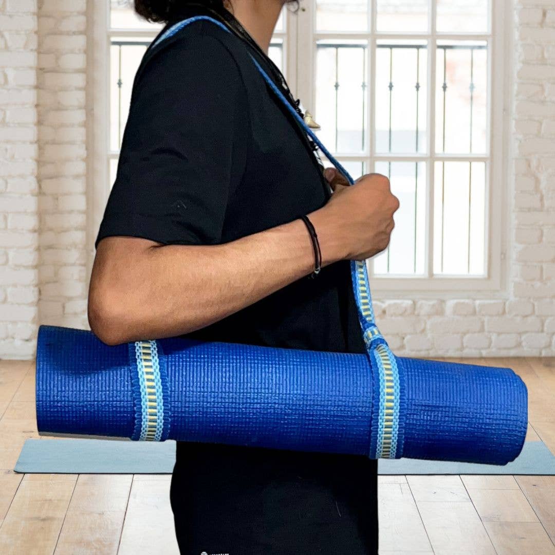 Yoga Bag These durable yoga mat carriers are handwoven using back looms by women of the Boruca tribe in Costa Rica. An adjustable pull-tie securely closes the top, while a full-length zipper ensures easy mat insertion and removal. Adequate in size, these bags fit standard and many oversized mats. An external side pocket enables secure storage of small items like a phone and keys. Due to the handwoven fabric and hand-dyed natural cotton, variation in color and pattern of the bags can occur. The Boruca people, living in the mountainous region of South-Central Costa Rica, use centuries-old weaving techniques on back looms to create these unique patterns for the bags and straps. Learn More About These Artisans