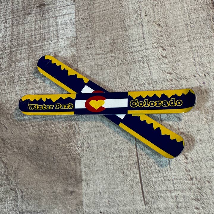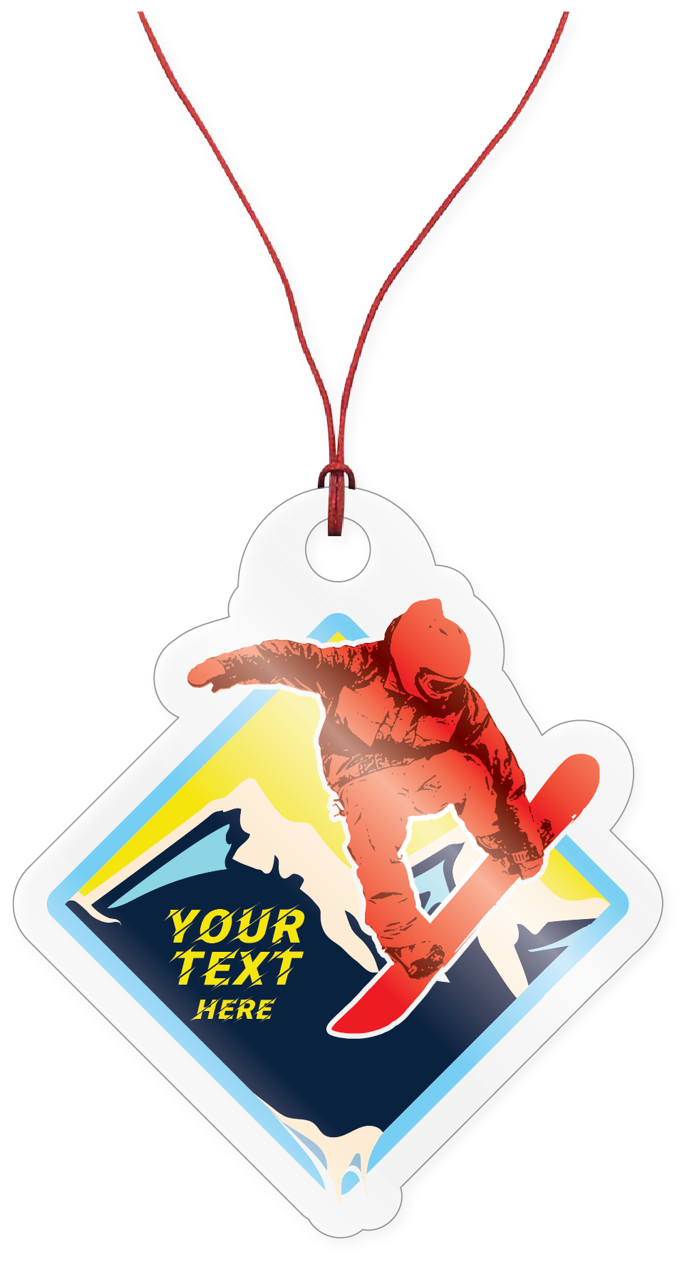 "Frozen" snow flakes aluminum snow board ornament 6" X 1.25". with hanging ribbon attached. This item can be name dropped with your , town, state, or resort for that extra touch! Great souvenir for ski or winter resorts!