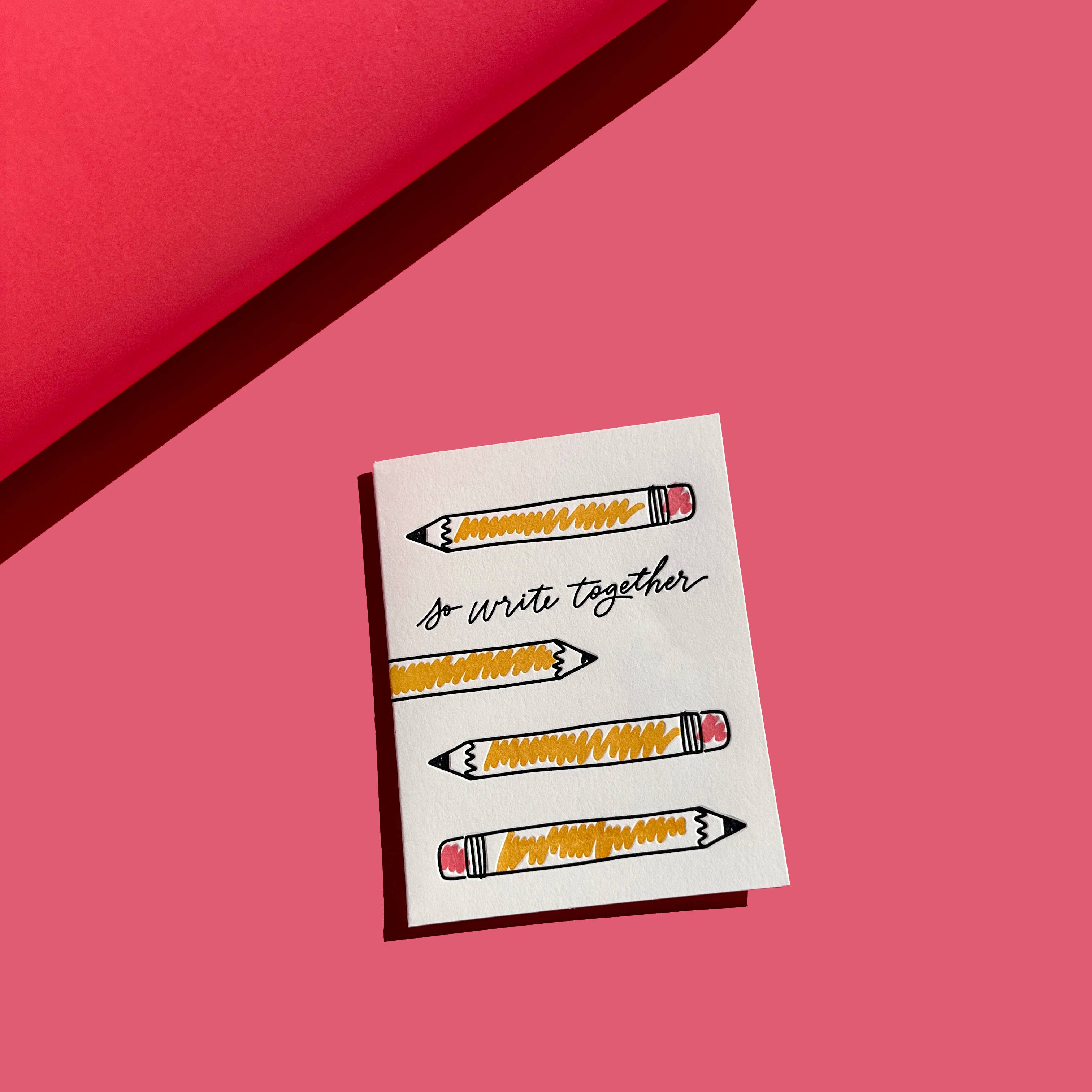 A2 folded card is blank inside. Paired with INK MEETS PAPER® Signature Envelope with printed seems and liner and packaged in a clear sleeve. All INK MEETS PAPER goods are designed, letterpress printed on antique machines (one color at a time!), and assembled by hand at our studio in sunny South Carolina, USA.