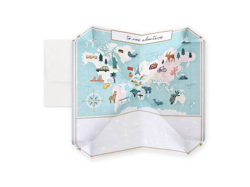 For your world traveling and adventurous friends, send them a card to let them know you are thinking of them as they embark on a new journey. Left blank inside for your personal note. Product Details: 4.5” x 6.25” Folded card, blank inside, scored on the top Printed on 110 lb white cover stock Kraft A6 envelope included
