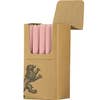 Eco, fair trade dinner candles, here in narrower, striped bands of British Colour Standard Willow Grey & Orange Flame. Discover the unique charm of these Eco Dinner Candles, hand-poured in Indonesia with fair trade, 100% Stearin wax and a pure cotton wick. These slim, striped style candles come in a pack of 4 and have a burn time of 8-9 hours, emitting a tall, clean flame. Their elegant striped design complements our solid color candles perfectly, making them an ideal gift. Packaged in a new multi-hole pack, these candles are perfect for adding a touch of color to any setting. Pack of 4 24.5cm Tall 8-9 hour burn time, with a tall clean flame.
