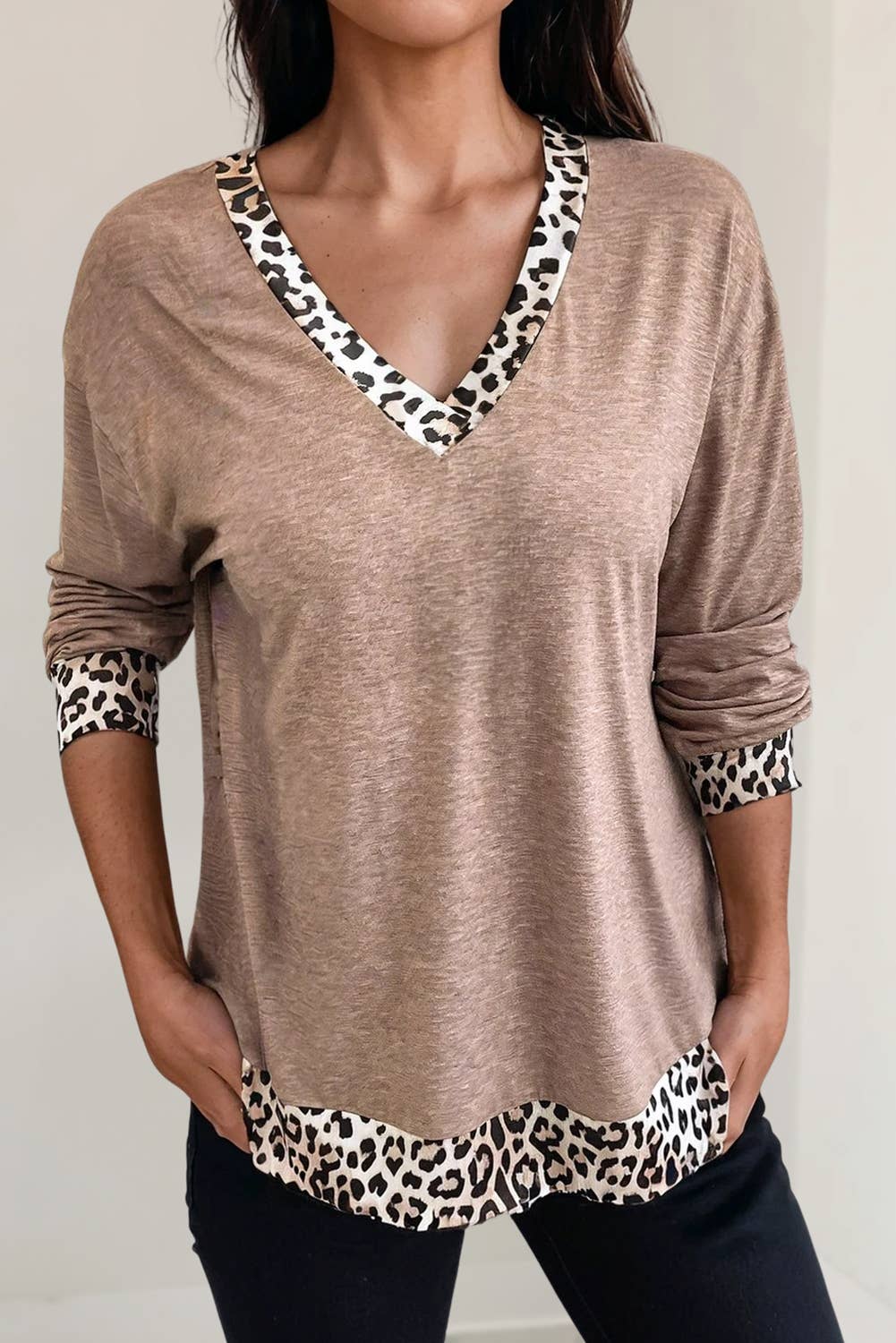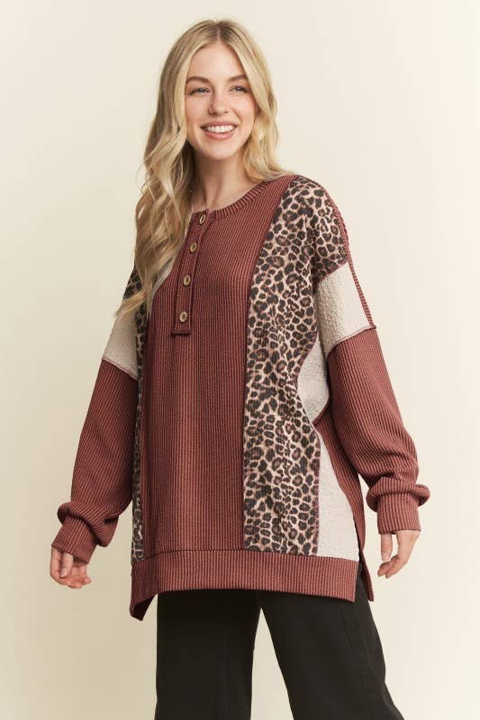 PLUS SIZE LEOPARD CHEVRON LONG SLEEVE TOP