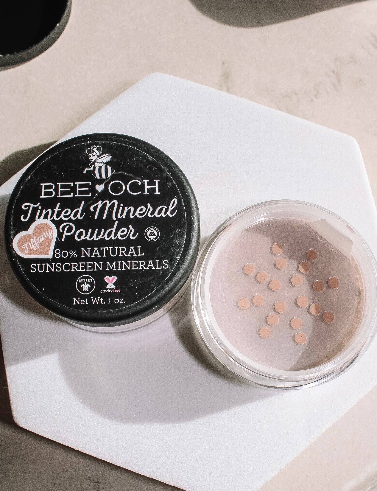 NEW LOOK! FRESH from the hive! Our brand-NEW Tinted Mineral Foundation is the perfect Mineral Makeup and Mineral Sunscreen in one! Blends bee-utifually with skin tone and provides SAFE and ocean-friendly coverage. . Made with 31% Natural Sunscreen Minerals, Iron Oxide for Color, and all organic ingredients. NEVER any toxic dyes or chemical UV filters. . Instructions: Use stick to apply evenly and generously to face before going outside or as Mineral Makeup Foundation after moisturizing. . Pro-Tip: Apply to eyelids for the perfect "natural-look" eye shadow! Ingredients: 31% Zinc Oxide (Non-Nano), *Cucurbita maxima (Pumpkin Seed) Oil, *Helianthus annuus (Sunflower) oil, *Carthamus tinctorius (Safflower) Oil, *Cera alba (Beeswax), Vitamin E (non-GMO), Iron Oxides (natural color) *Organic Ingredient Important Disclaimer: Not evaluated for SPF. This product is not intended to treat, cure or prevent any disease. FREE Display with 3 of Each Tint in a single container type (12 Total)!