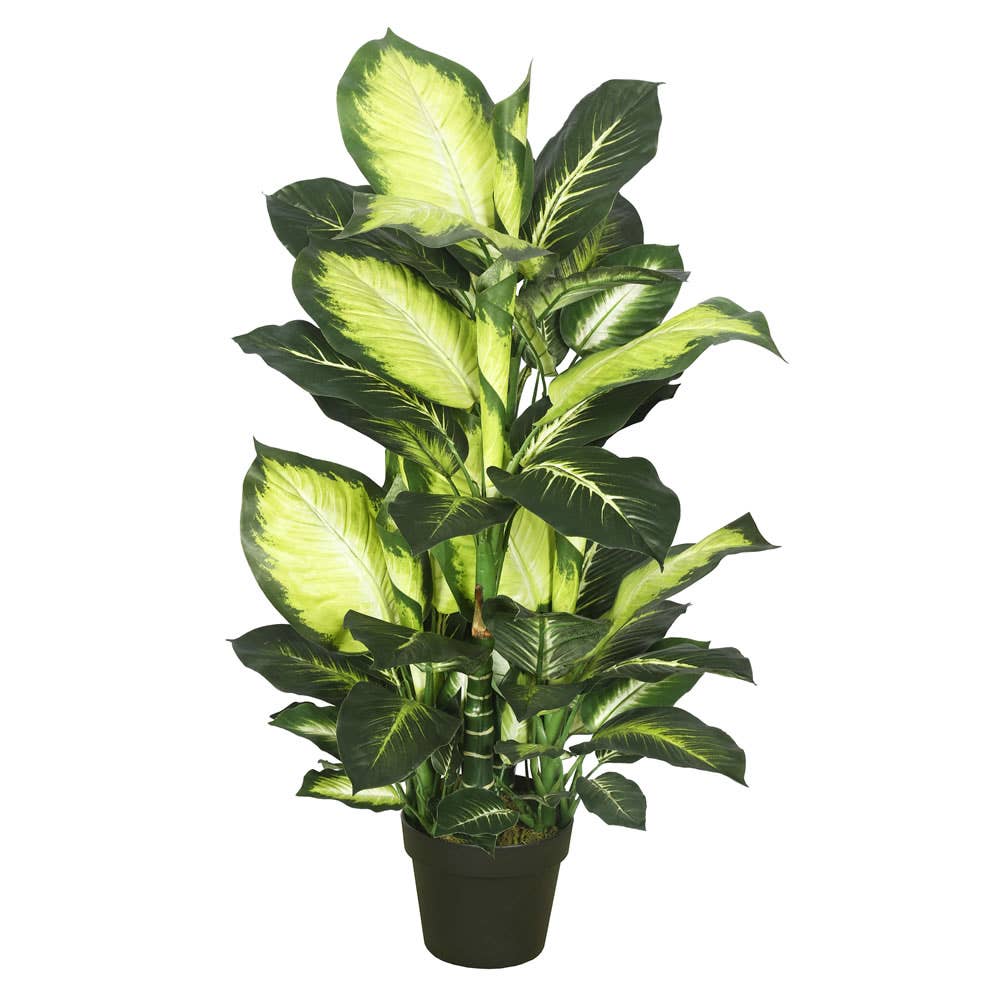 Vickerman 52" Artificial Green and Yellow Real Touch Dracaena Tree, Comes In A Black Plastic Insertable Pot, Making This Plant Easy To Place In The Decorative Container Of Your Choice.