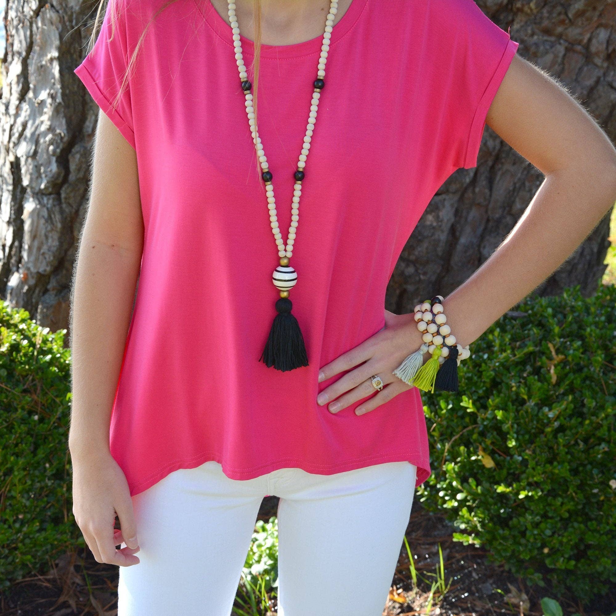 A new take on our best selling beaded necklace... Cork! This necklace features cork beads accented with two light blue swirly, and smaller solid colored ceramic beads. This necklace matches perfectly with any Spring or Summer outfit! * Wood Beads, Cork Beads, Ceramic Beads * 27"