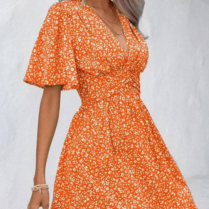 CWDSD4933_SUMMER V-NECK WAIST PEPLUM DRESS SHORT