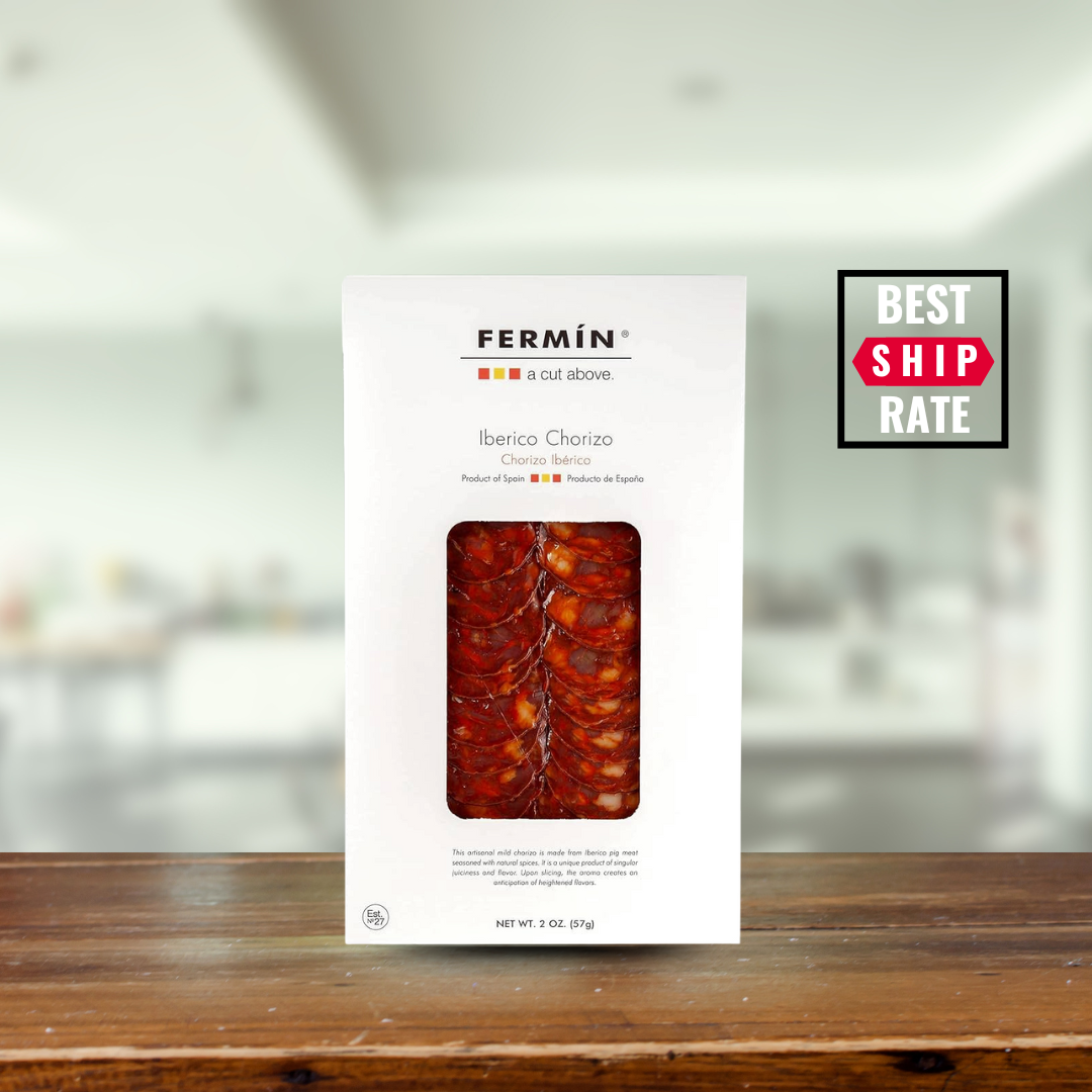 Mercado Famous Chorizo Iberico is a mild, juicy, and delectable Spanish cured sausage- It is the perfect meat for charcuterie, snacking, and sandwiches. We recommend pairing Mercado Famous Chorizo Iberico with robust red wine, hard ciders, cheddar cheese, and mimosas! The Chorizo Iberico slices are made from the finest cuts of the Iberico Ham, and cured for 40 days in La Alberca, Spain. Our product comes from a century old family farm in Salamanca, Spain. Our pigs roam free across a protected reservation of meadow and forrest, and are fed on acorns, natural pastures and other organic foods. We believe happy pigs, happy meats. Chorizo Iberico comes pre sliced, vacuum sealed and ready to eat. It is shelf stable, and does not require refrigeration util the pack is opened. One pack contains 2 servings of Chorizo Iberico. Ingredients: Pork Meat, Salt, Pimenton, Dextrin, Dextrose, Garlic, Oregano Gluten Free, Lactose Free, No Nitrites or Nitrates Added
