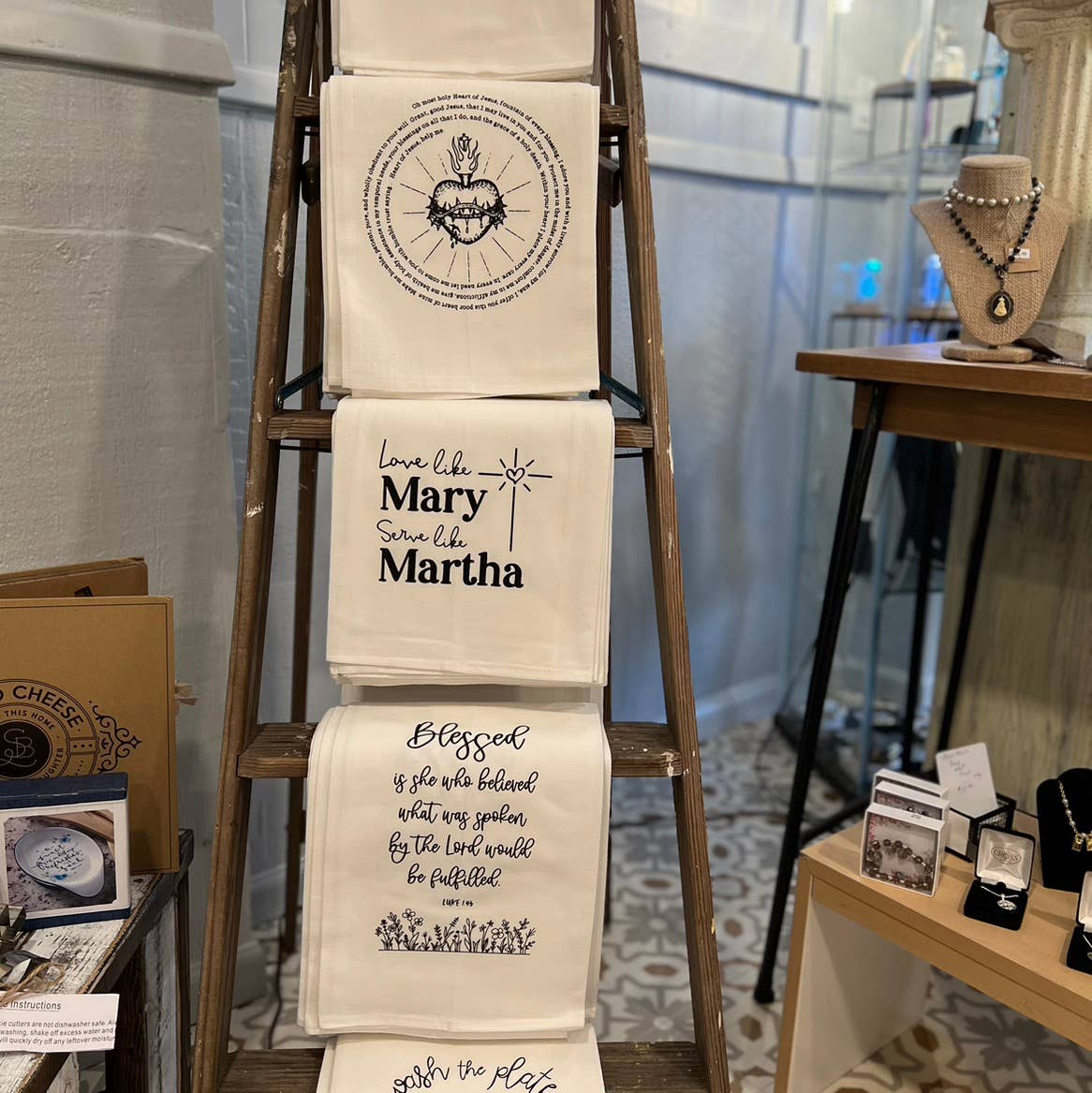 Bless Us O Lord Catholic Grace Before Meals Prayer Kitchen Towel by Firefly Wishes. ▪ 100% cotton towel is heavy-weight, durable and highly absorbent ▪ Flour sack towel is lint free and hemmed on all four sides to prevent fraying ▪ Bright white fabric with screen print quality design ▪ Large 30x30" size A traditional Catholic prayer to recite ("saying grace") as a family before meals as a reminder that every good thing we have comes from God. A sweet gift for a bridal shower, housewarming, Mother's Day and more.