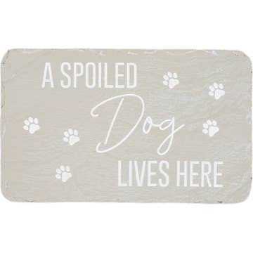 Welcome any visitors with a little Rottie love with this adorable Rottweiler statue sitting at your door. A double-sided sign hangs from the jingle bell collar that reads On Patrol on one side and Spoiled Rotten on the other, so you can choose the greeting that suits your mood. It is a fun-loving piece of humorous home decor you can display indoors or outdoors. Let this adorable Rottweiler sit at the front entry or bring a little character to the patio or garden. It's cast in resin and finished in black and brown in near-lifelike detail with expressive eyes and a shiny look to the fur. This 12.75-inch high, 11.5-inch long, 6.5-inch wide statue brings a special touch of canine charm anywhere that is sure to have any dog lover howling with delight.