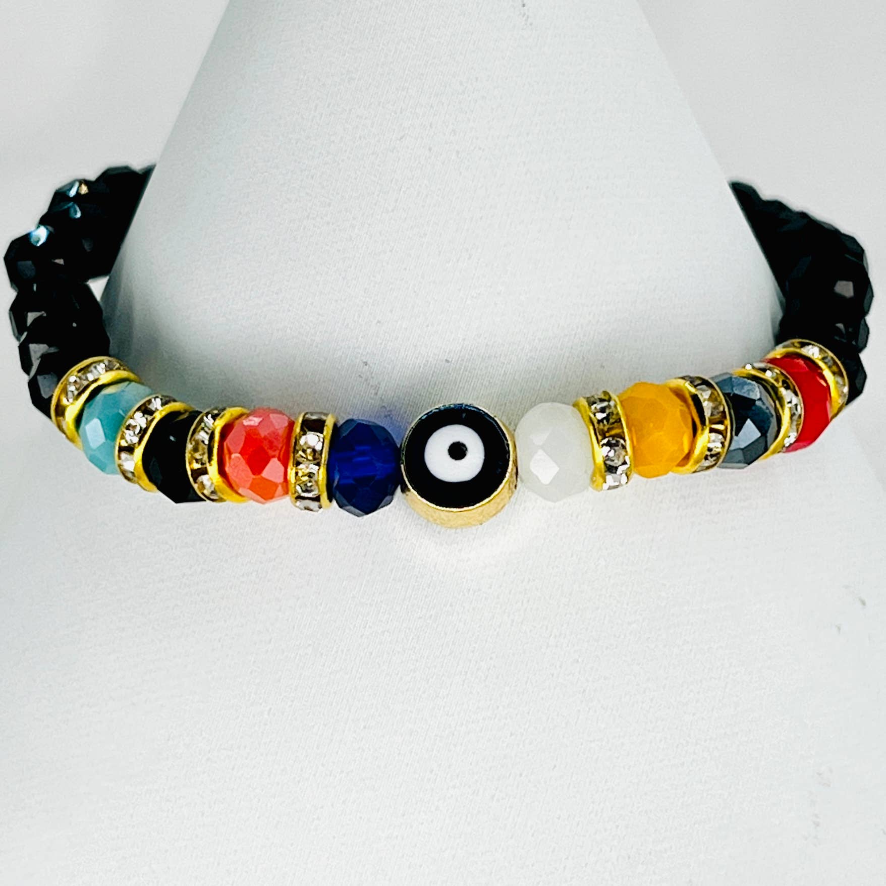 Crystal Beaded Evil Eye Bracelet – Stylish Protection in Every Color Add color, sparkle, and positive energy to your jewelry collection with our Crystal Beaded Evil Eye Bracelets. Each piece features glossy crystal beads paired with a classic evil eye charm — loved for its meaningful symbolism and high retail sell-through. Perfect for boutiques, gift shops, online stores, teen shops, metaphysical/crystal shops, and impulse-buy displays. ✨ Features • 12 Color Options – Vibrant, glossy crystal beads in a full spectrum of popular colors • Evil Eye Protection Charm – A symbol of positivity and good energy • Comfort Fit – Chain cord fits most wrists comfortably • Lightweight & Everyday Friendly – Great for daily wear or stacking • Strong Gift Appeal – Customers often buy multiple colors • Easy Retail Pricing – $3–$5 retail makes it an ideal impulse buy 🟦 Mix & Save Option (Retailer Favorite) Choose the Mix Color Set (12 pcs) option to receive a fun, pre-packed assortment of bestselling colors at a friendlier per-unit price. Perfect for fast setups, gift walls, event displays, and high-volume orders. 📦 Wholesale Details • Sold individually by color OR as a pre-packed Mix Set of 12 • Minimum order quantity per color: 12 pieces (or adjust based on your case size) • Great margin for boutiques (typically 2.5–4× retail markup) 🔒 Quality Note Handcrafted item. Slight bead tone variations may occur.
