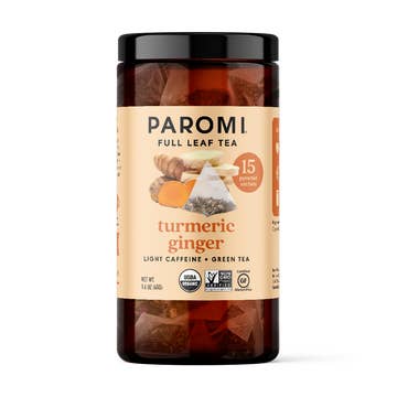 This tea is a deliciously healthful blend, with the subtle spicy taste of turmeric and cinnamon, combined with the soothing taste of ginger. The primary active ingredient in Turmeric is curcumin, a potent antioxidant to help promote optimum health and well-being and support your body's natural defenses. It is truly a delightful blend to be enjoyed at any time of the day. Ingredients: Organic Turmeric Root, Organic Cinnamon, and organic Ginger Root. Serving size: Pour 8-12 oz of boiling water (212° F) over 1 tea bag. Steep 3-4 minutes. Prepackaged in fusible (unbleached) paper tea bags manufactured from a specially selected blend of manila hemp fiber. Certified USDA Organic, Caffeine free.