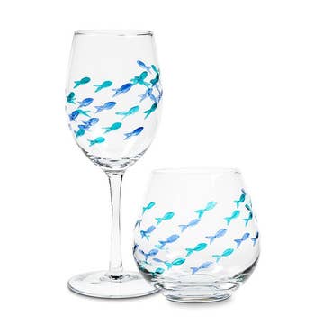 Sea Life Hand Painted Stemless Glasses, Pale Turquoise