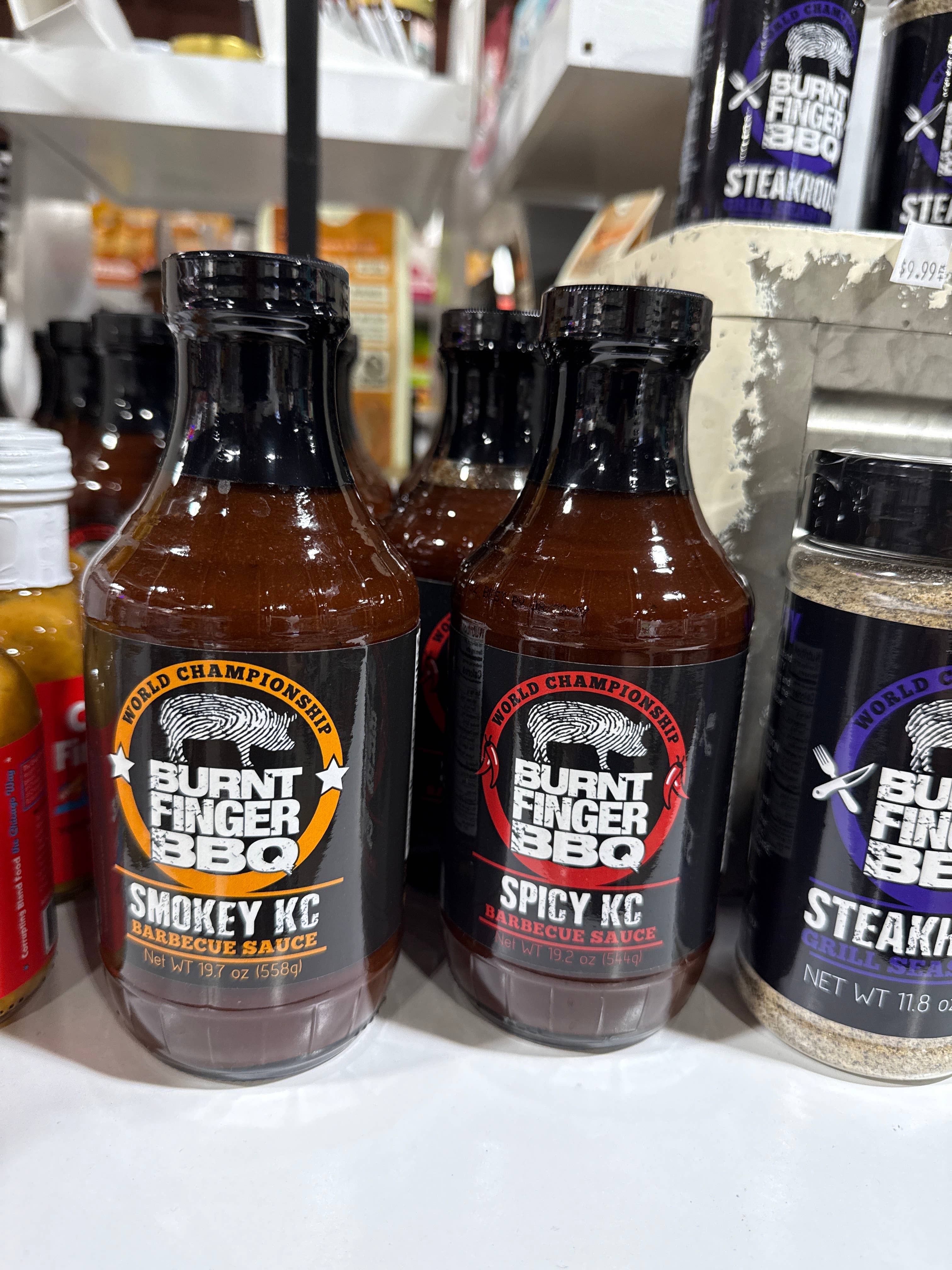 Two-Time World Champion. One Bold Bottle. Crowned Best Sauce on the Planet at the 2024 American Royal World Series of Barbecue, Spicy KC beat out 363 competitors to take the top prize. That win followed a 1st Place finish at the 2022 Memphis in May World Championships, cementing its place as a cornerstone of the Burnt Finger BBQ competition program. This isn’t just heat for heat’s sake—it’s a robust twist on our classic Kansas City-style sauce. Built on the rich, balanced flavors of Smokey KC, Spicy KC layers in a gentle chipotle kick for those who crave just a little more fire. It’s bold but balanced, smoky with a spark—a warm hug of heat that transforms everyday bites into championship-level barbecue. Recommended for beef, pork, poultry, veggies, burgers, wings, nuggest, fries, sandwiches, pizza… and yes, even pudding and ice cream. 🔥😉